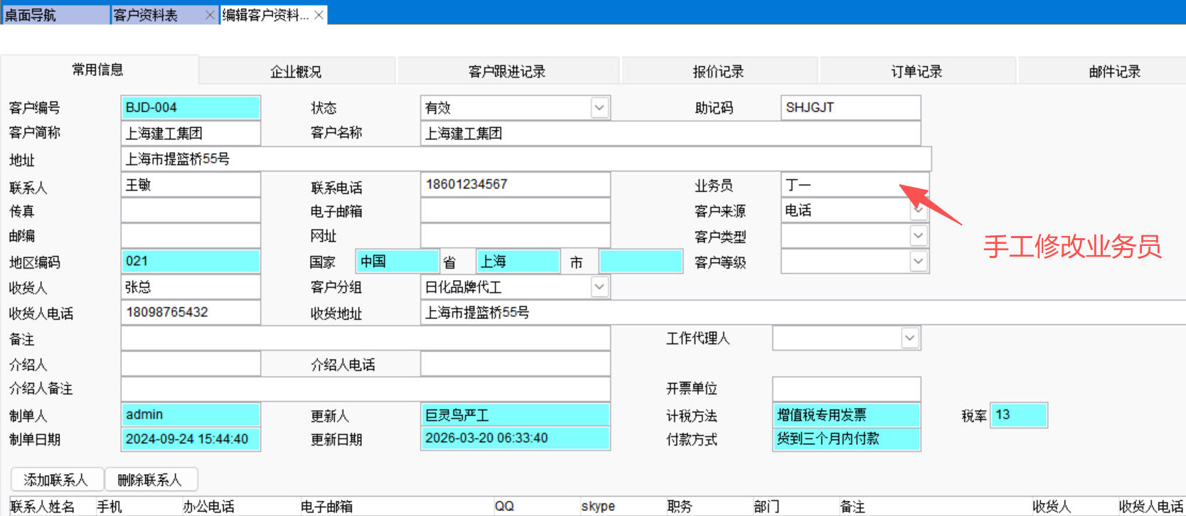 這時可以使用批量修改業(yè)務員