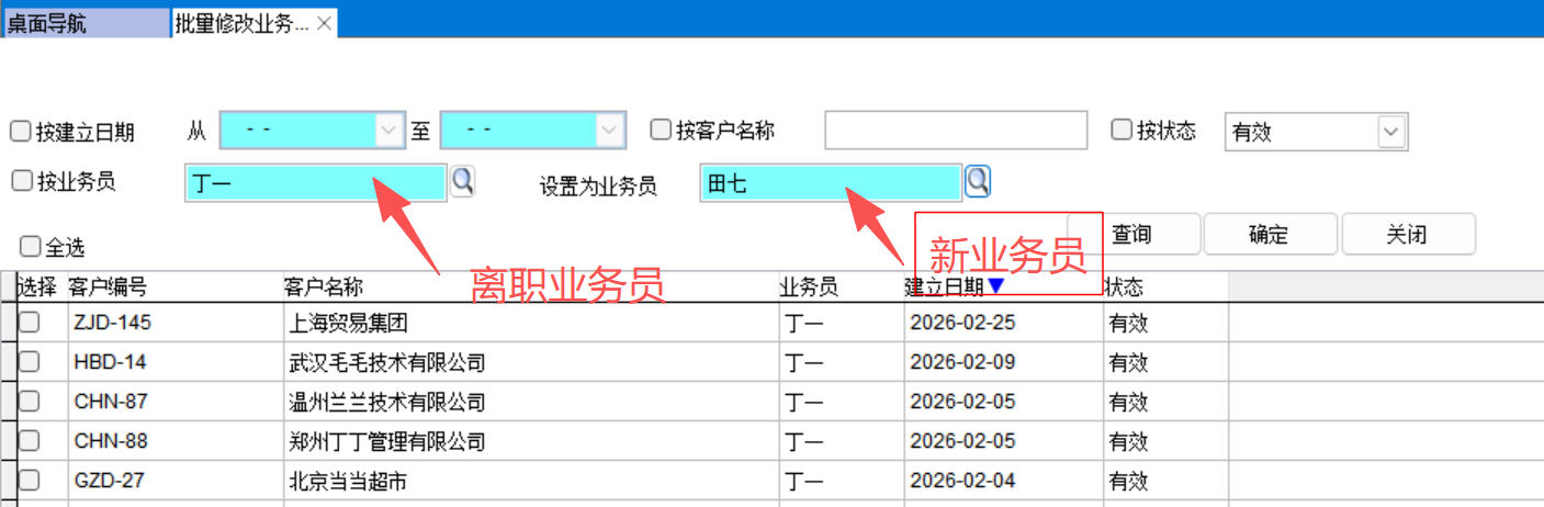 4、批量修改業(yè)務員客戶