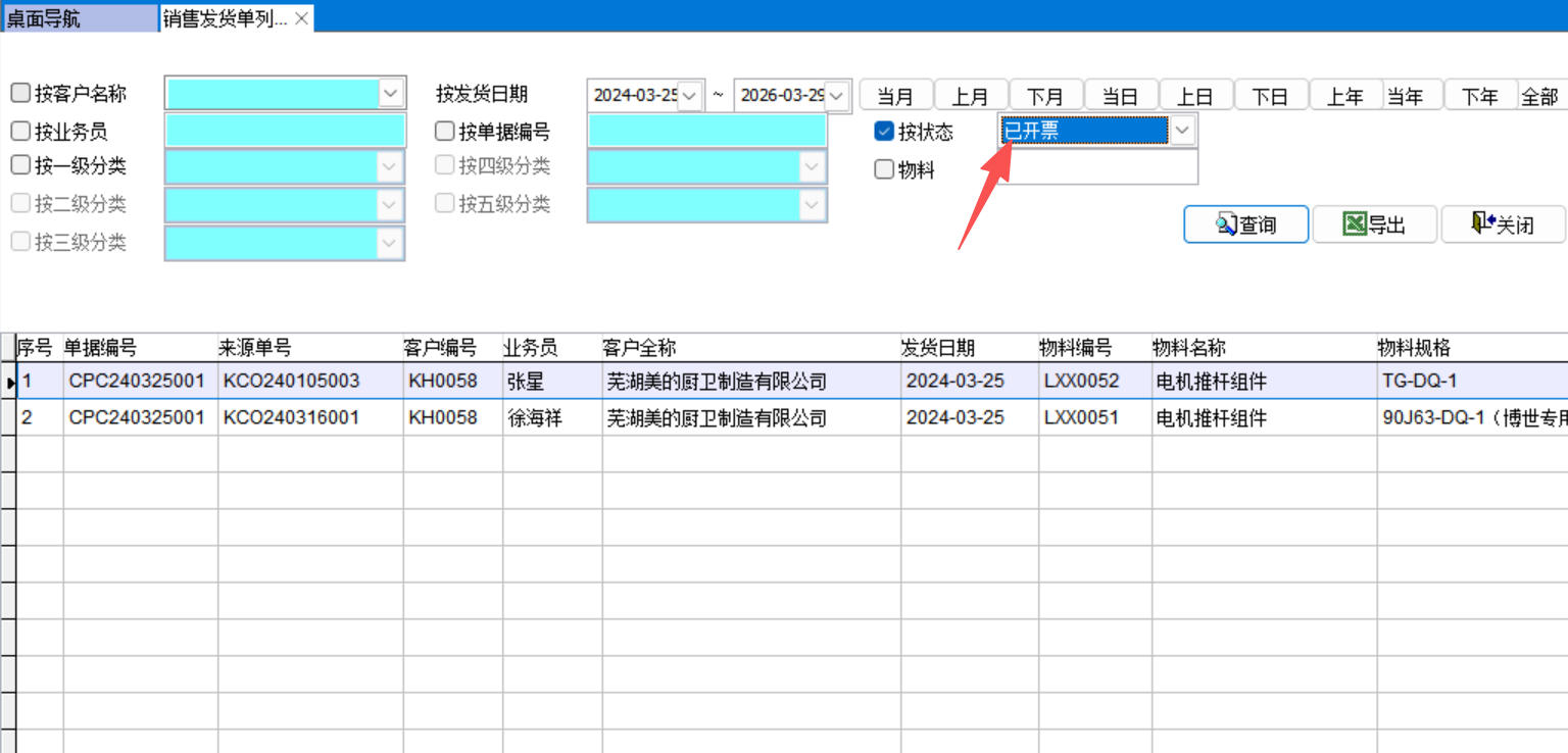 按狀態(tài)查詢,已開(kāi)票、未開(kāi)票