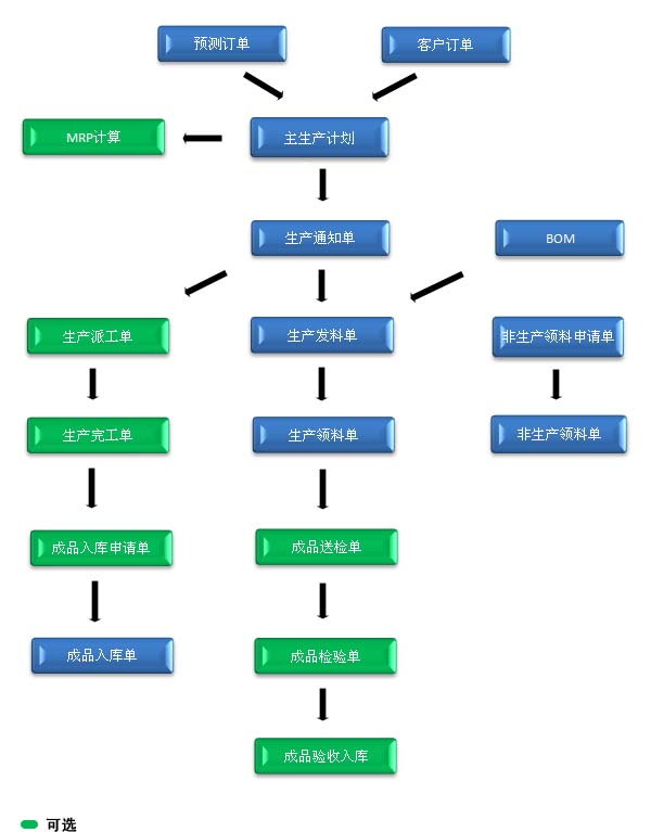 生產(chǎn)任務(wù)完成可以通過送檢單檢驗入庫,也可依據(jù)生產(chǎn)通知單或成品入庫申請單入庫。
