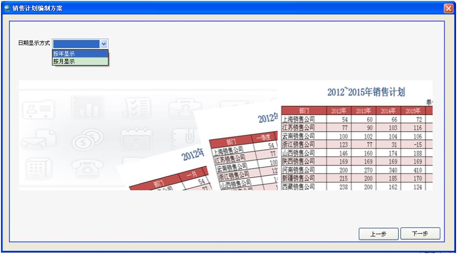 選擇日期顯示方式,制定年度計(jì)劃或者月度計(jì)劃,點(diǎn)擊【下一步】