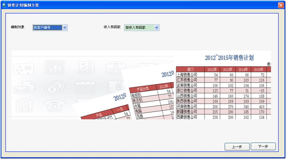 依次選擇編制對(duì)象、收入和回款,點(diǎn)擊【下一步】