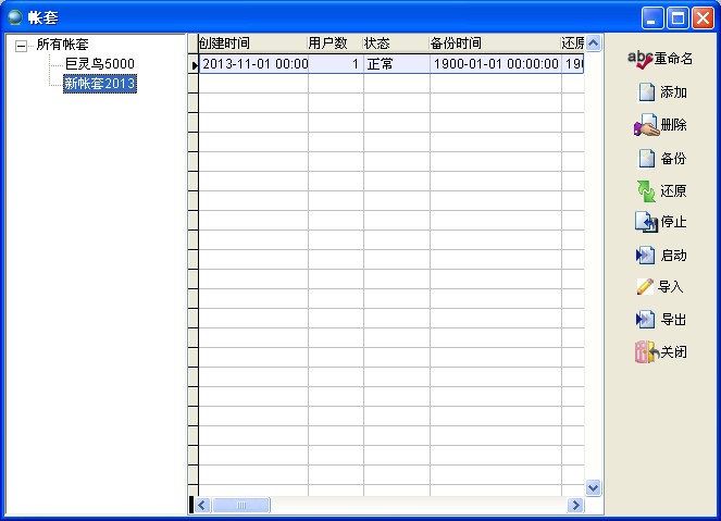 在新建帳套后,此帳套的當(dāng)年剩余的會(huì)計(jì)期間會(huì)自動(dòng)建立,如下圖,2013年11月1日新建帳套
