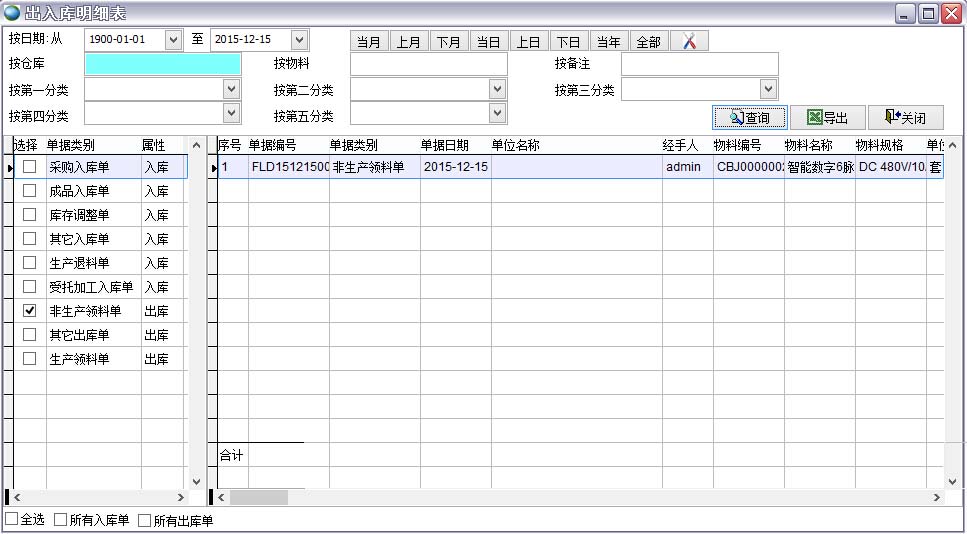 統(tǒng)計(jì) 可以通過出入庫(kù)明細(xì)表對(duì)非生產(chǎn)領(lǐng)料單進(jìn)行統(tǒng)計(jì)