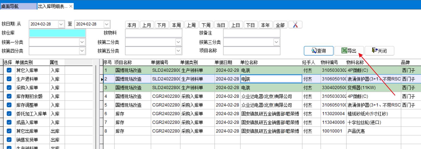 所以出入庫(kù)明細(xì)表需要能按項(xiàng)目名稱查詢