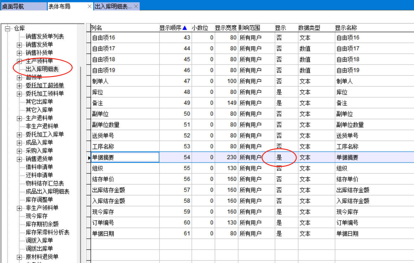 表體布局就是表格內(nèi)顯示列的設(shè)置