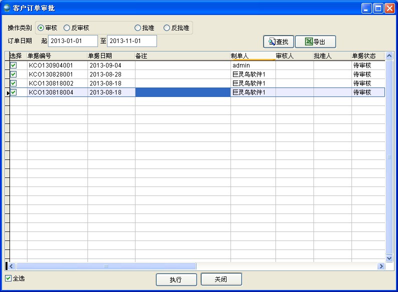 有審核、批準(zhǔn)的業(yè)務(wù)類單據(jù)都可以進(jìn)行批量審核、批準(zhǔn)以提高工作效率。