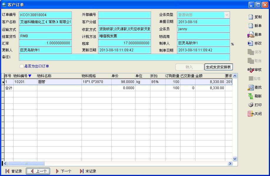 來源:巨靈鳥軟件 作者:進(jìn)銷存軟件 發(fā)布:2013/11/1 瀏覽次數(shù):6156