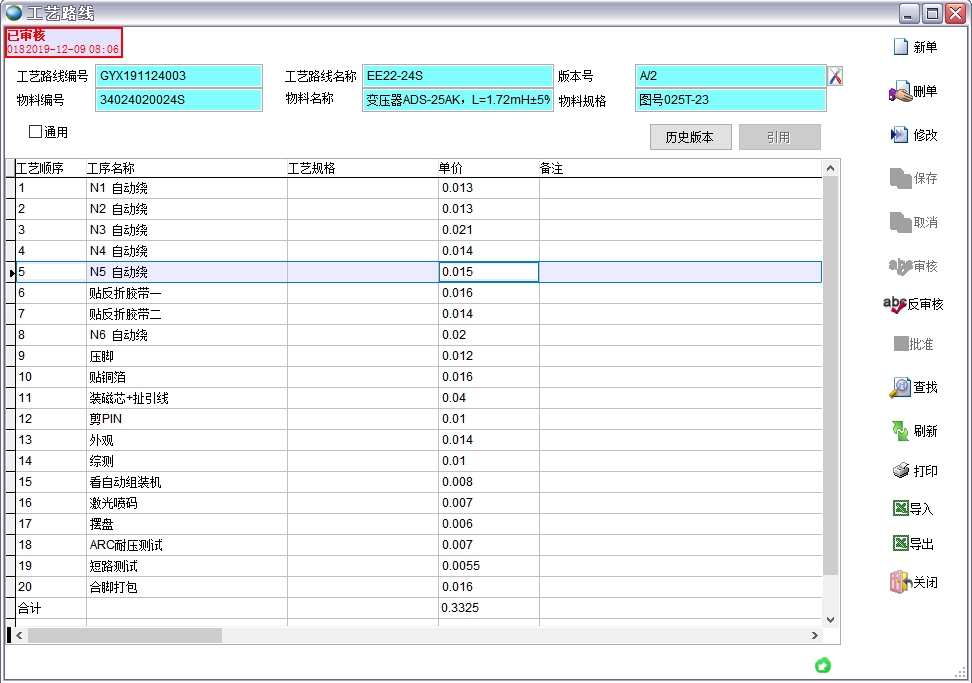 b、工序計價表