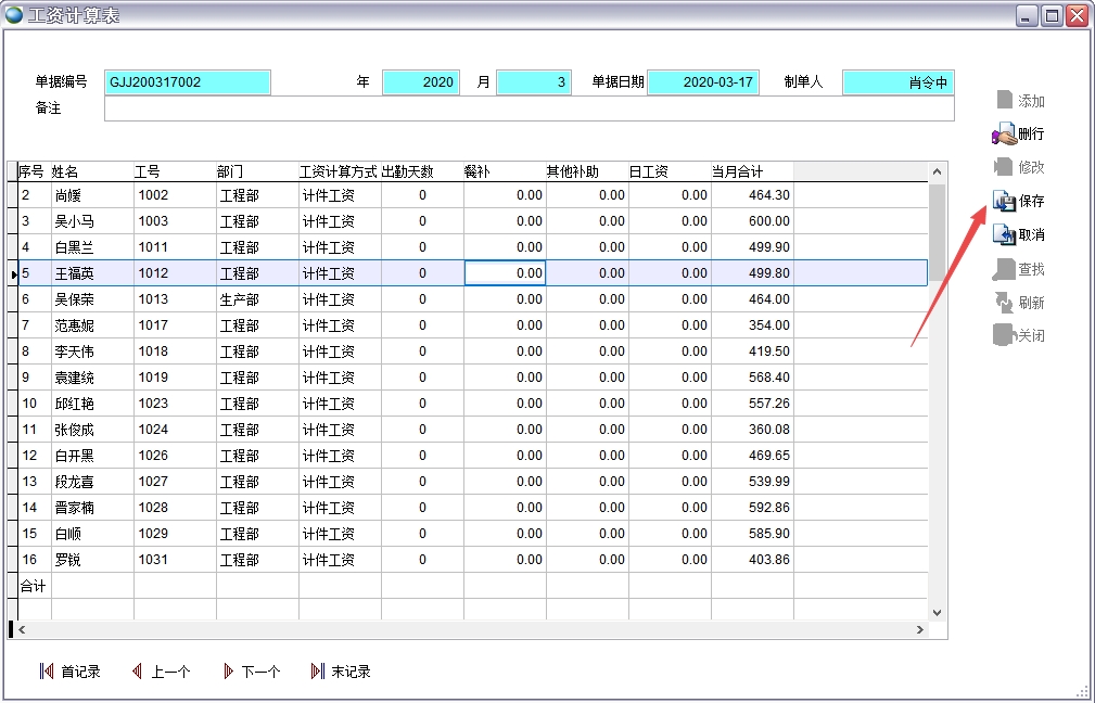 最后保存工資表