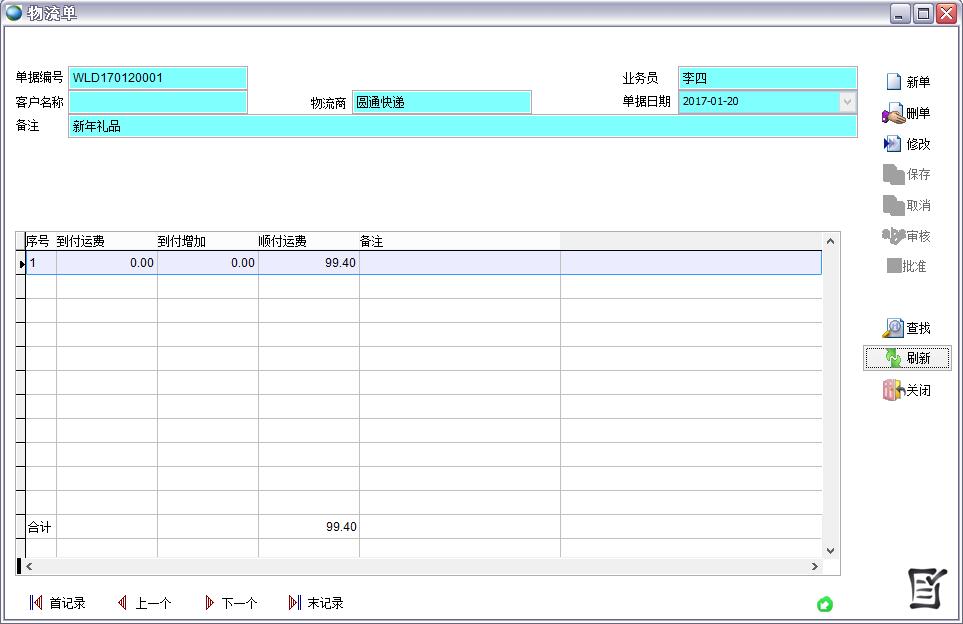 打開(kāi)路徑:【主菜單】->【銷(xiāo)售】-> 【物流單】