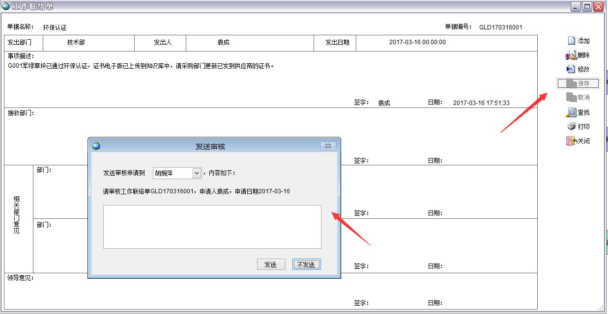 如果勾選了系統(tǒng)發(fā)送,則會(huì)有發(fā)送人的消息發(fā)送和接收人的消息提醒。