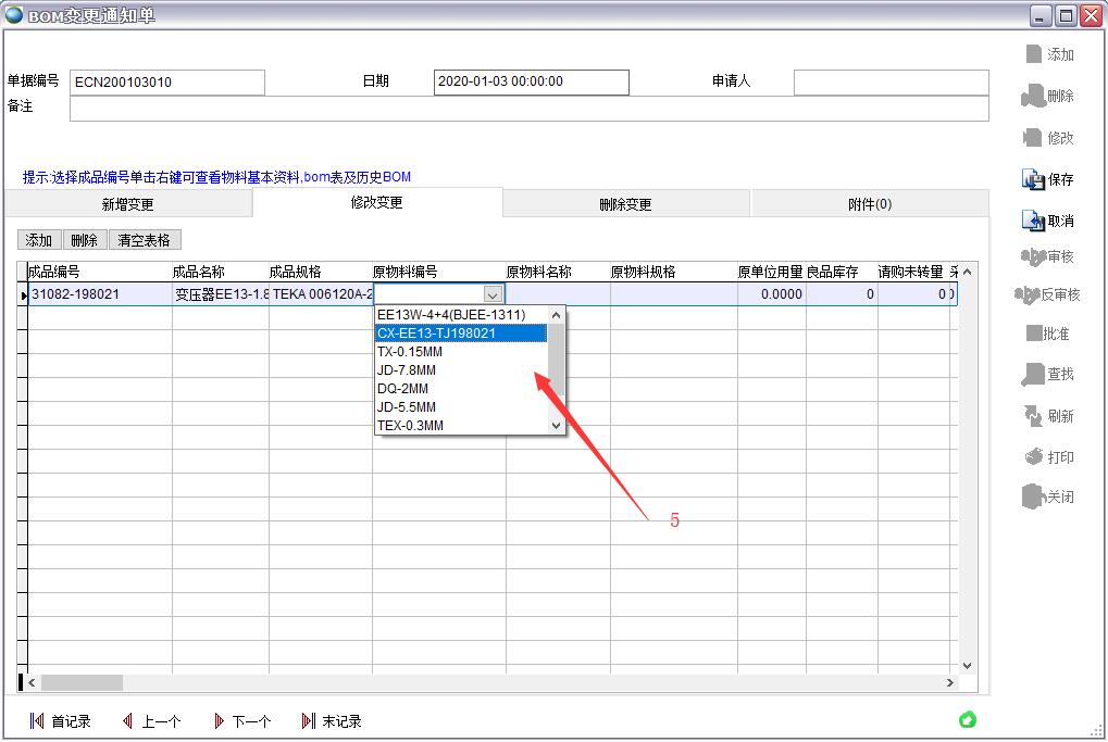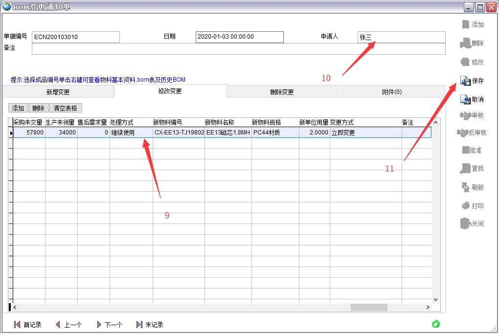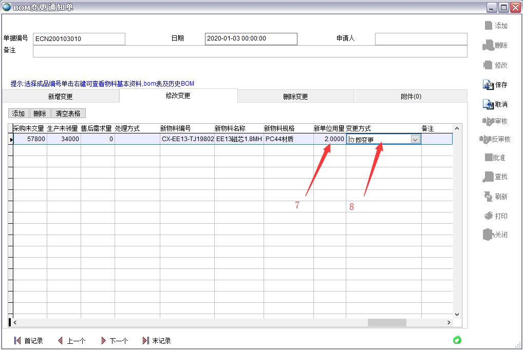 BOM變更分三種形式:新增變更(添加物料)、修改變更(修改已有物料)、刪除變更(刪除某個物料)