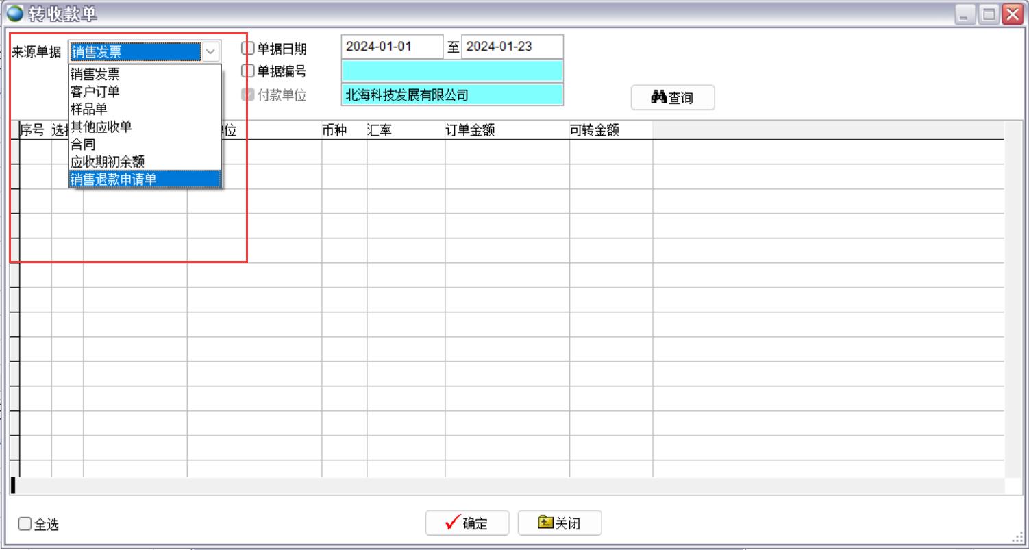 銷售收款單殼引用的來(lái)源單據(jù)包括:銷售發(fā)票、客戶訂單、樣品單、其他應(yīng)收單、合同、應(yīng)收期初余額、銷售退款申請(qǐng)單