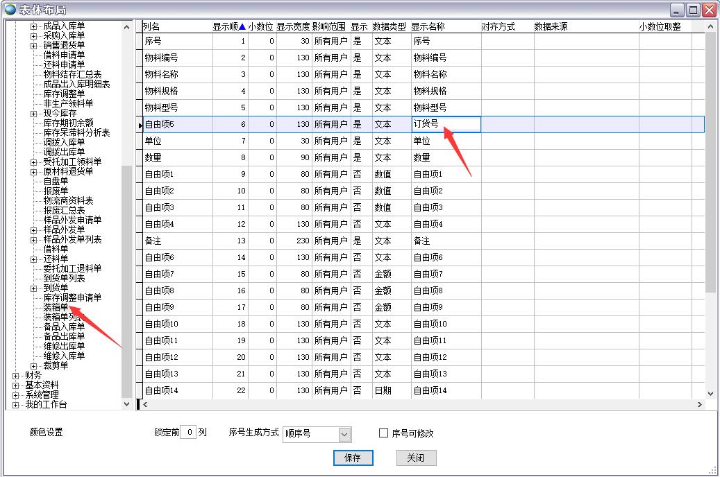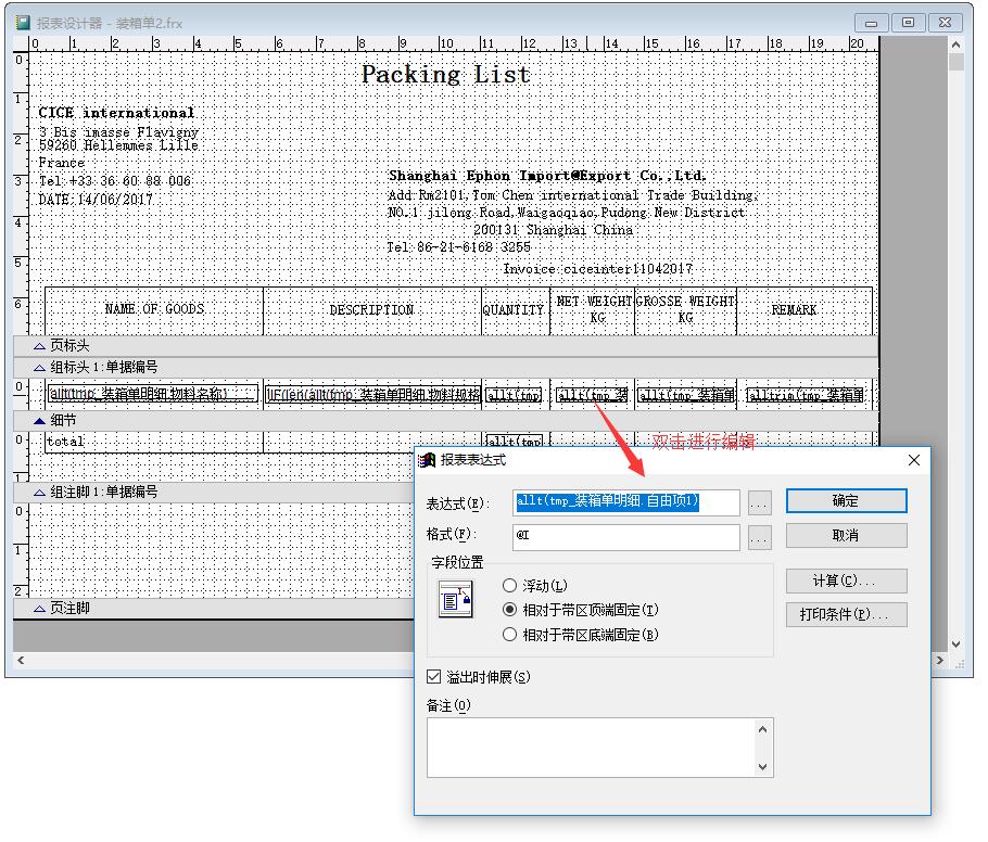 裝箱單的格式每家企業(yè)都會(huì)不同,因此需要通過(guò)自由項(xiàng)來(lái)實(shí)現(xiàn)自定義