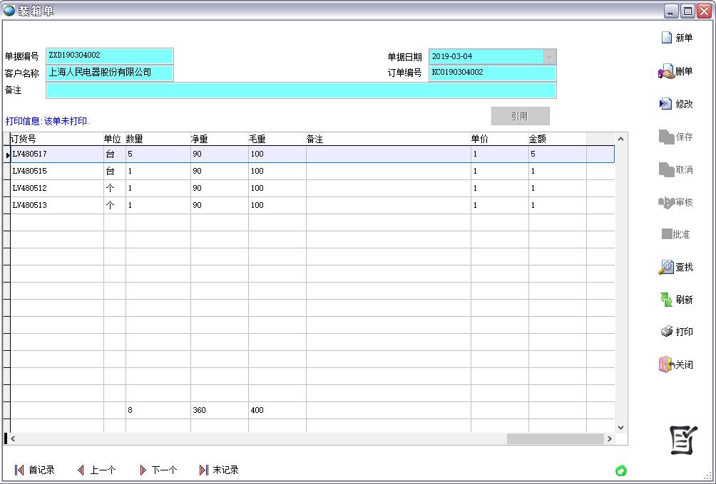 注意:如果客戶訂單的訂購(gòu)數(shù)量為0不能引用到裝箱單