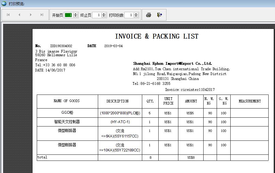 裝箱單打印模板3顯示金額