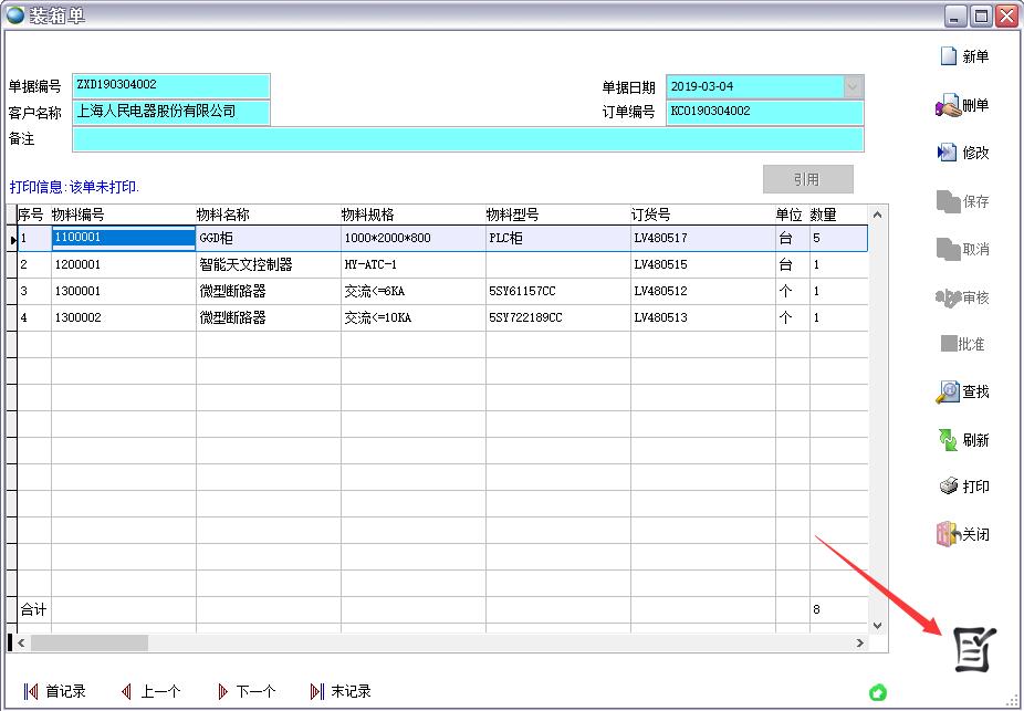打開(kāi)路徑:【主菜單】->【倉(cāng)庫(kù)】-> 【裝箱單】